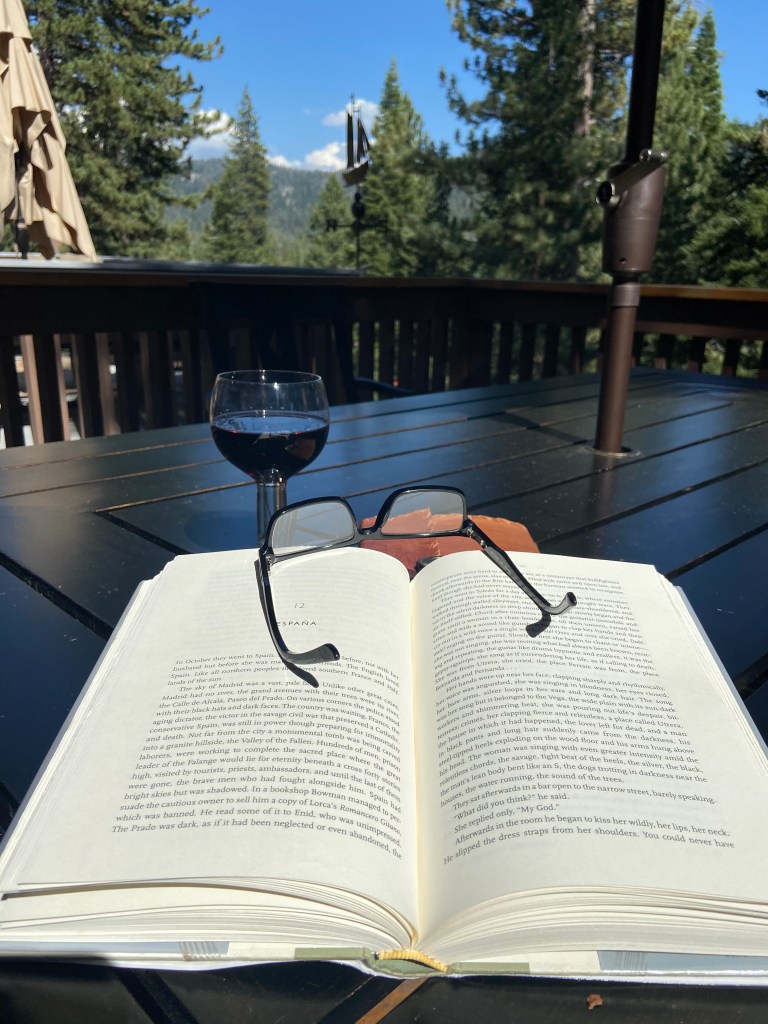 There’s also a real communal feel to the condo, which I noticed when sitting on the deck. A kind woman with gray hair appeared on the deck next door, and we had a lovely chat about the weather and barking dogs and the pandemic, at which point I took a mental note that the space between the deck rails appeared to be exactly six feet. This kind, gray-haired woman told me she worked in town for a community bank and that she was splitting time telecommuting between her home in Fresno, the mountain condo, and a beach house. “We own another home in Santa Cruz,” was what she said, and because I’m a whiz with math, I figured out pretty quickly that based on the evidence, this woman and the other half of her plural pronoun owned three homes, at least, which made me wonder if I heard her correctly: did she work in town for a community bank or did she rob community banks in town? I further wondered if maybe I had gotten into the wrong line of work, but I saw that kind of comparison-thinking driving me into the Wallows, which is no place to visit when you’re drinking red wine on a sunny deck reading James Salter and, for the moment, all is right with the world.